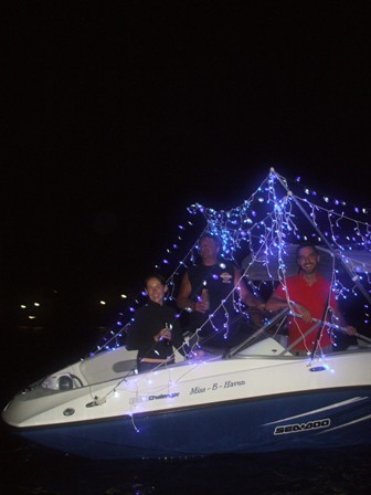 Then we all decided it couldn’t just be forgotten so we decided to go for it with the two boats. Two days later, and two days before Christmas we were on the bay in boats surrounded by Christmas lights and having an absolutely awesome time. There were two boats with seven people total and we had our Christmas music blaring as we made a slow pass back and forth the town of Corozal. We weren’t sure anyone would see us from shore since our parade had sort of fizzled before it sparked back to life. There had been no announcement this would be taking place, but there were plenty of people along the water that night. So we had the Christmas carols blaring, waved and yelled, “Merry Christmas” and spun the boats in front of each crowd we passed.